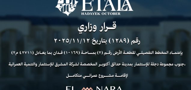 السادة عملاء شركة المنارة لمشروع إيتالا كمبوند__تم إصدار القرار الوزاري رقم (1289) بتاريخ 12/11/2025